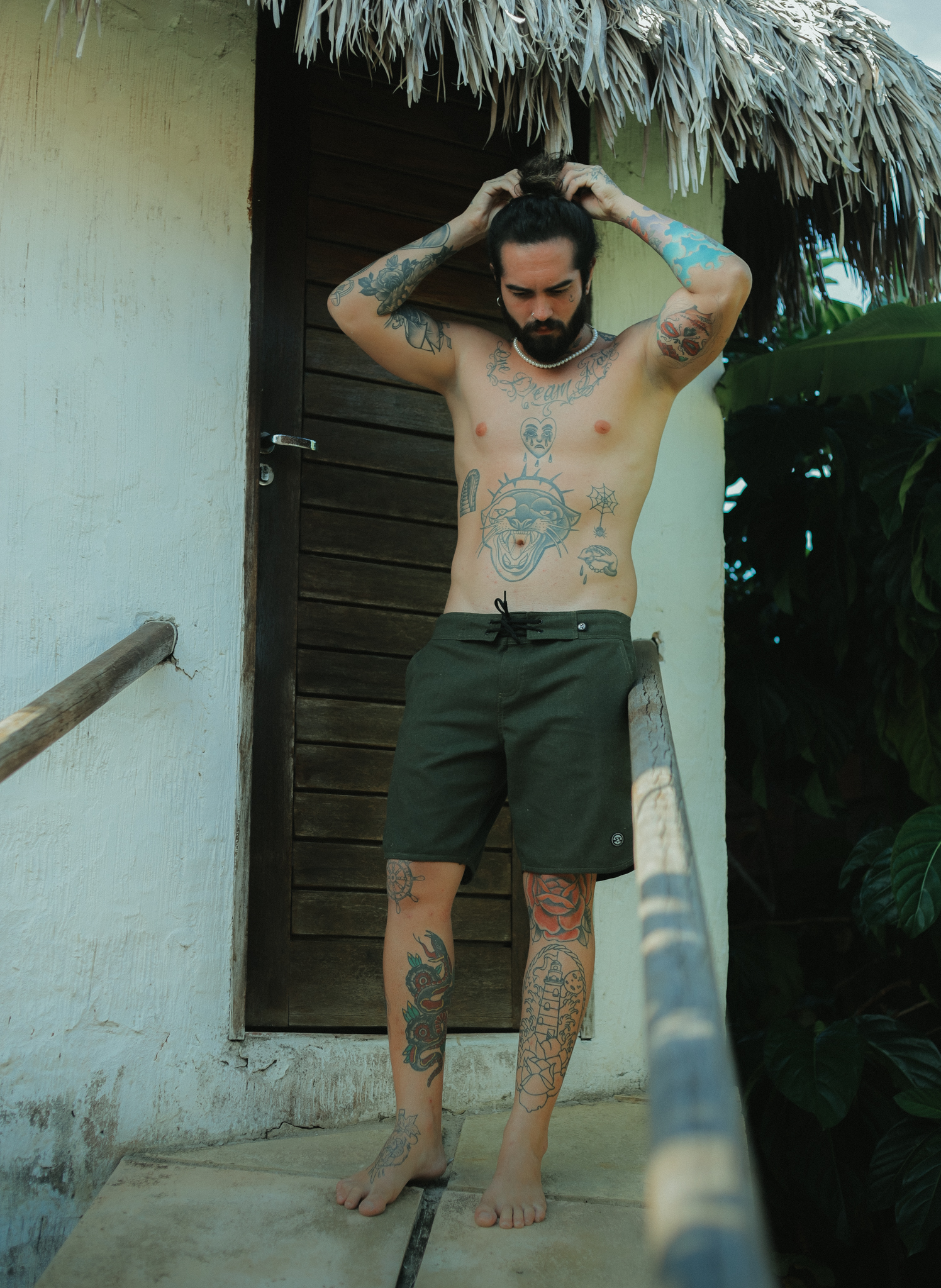 Board Short Retrô Linho (Verde musgo)